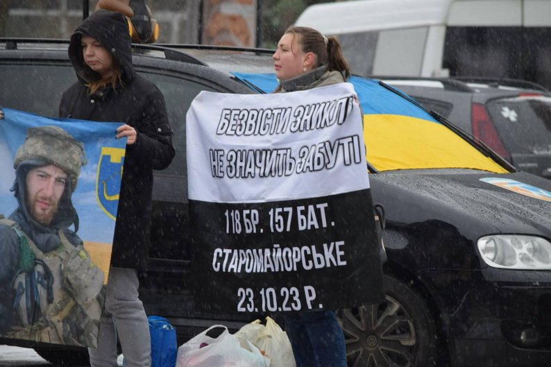 "Стою за чоловіка, який з перших днів пішов воювати добровольцем. Був кулеметником. Його побратими сказали, що встигнув двічі вистрілити з РПГ Ручний Протитанковий Гранатометй 24 січня 2023 року він зник безвісти. Був за Вугледаром. Майже три роки немає про нього жодної звістки. Тепер ходжу на акцію, щоб підтримати як можу".