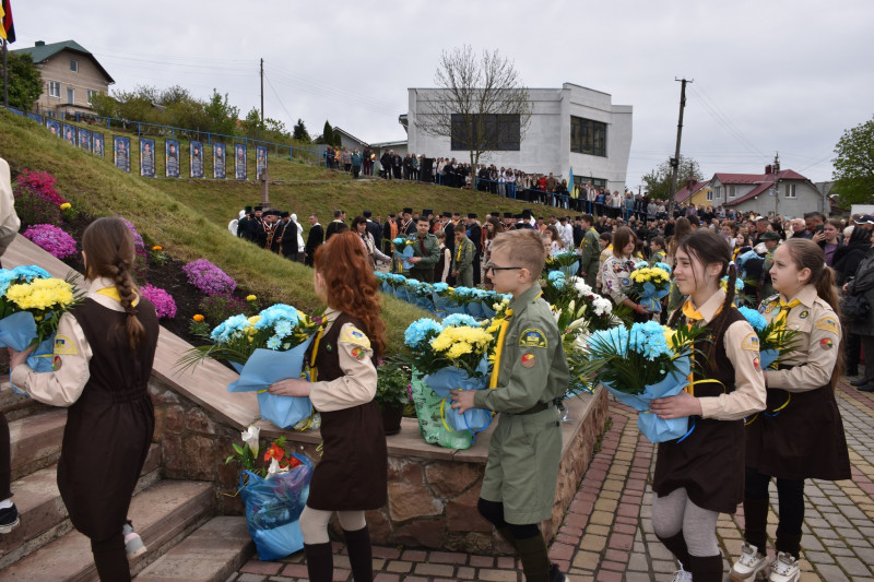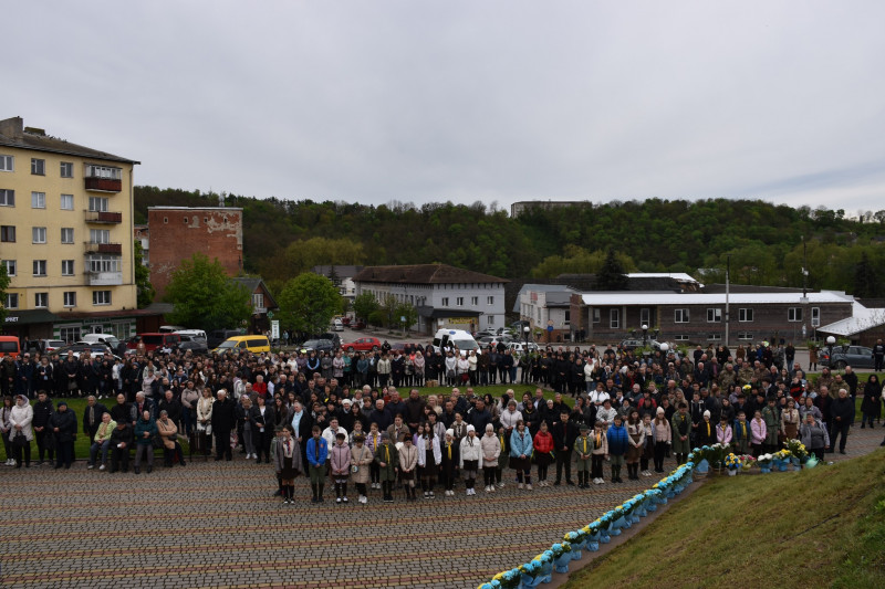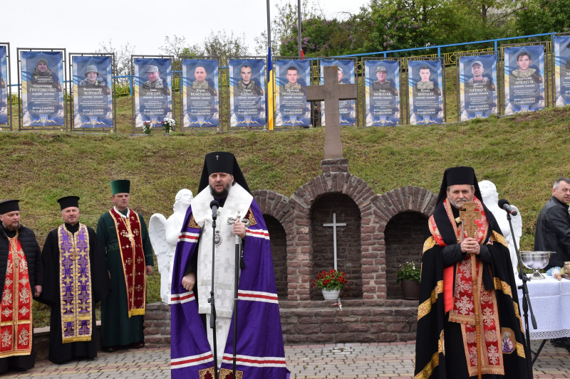 Пам’ять воїнів вшанували хвилиною мовчання, прозвучав Державний Гімн, священники відправили панахиду за загиблими Героями та освятили меморіали, до світлин бійців поклали лампадки й квіти.
