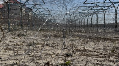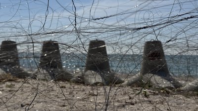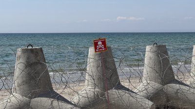 Купатися в морі в Коблеве не можна від початку повномасштабного вторгнення. Береговий відріз укритий колючим дротом, протитанковими перешкодами — тетраедрами та мінами.