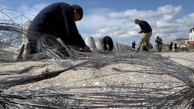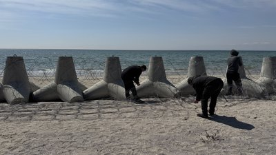 На Миколаївщині бійці інженерних підрозділів 123-ї бригади територіальної оборони відновлюють та модернізують оборонні загородження на узбережжі села Коблеве. Через мінну небезпеку доступ до моря залишається закритим.