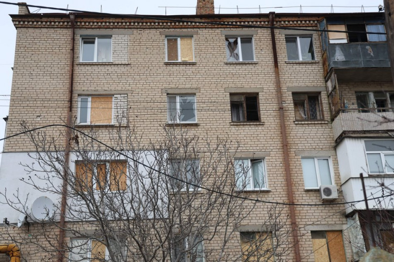 У Дніпровському районі Херсона внаслідок чергового російського обстрілу пошкоджені два будинки, вибиті вікна у багатоповерхівках. Війська РФ атакували житловий квартал 27 листопада. За даними обласної військової адміністрації, травмованих немає.