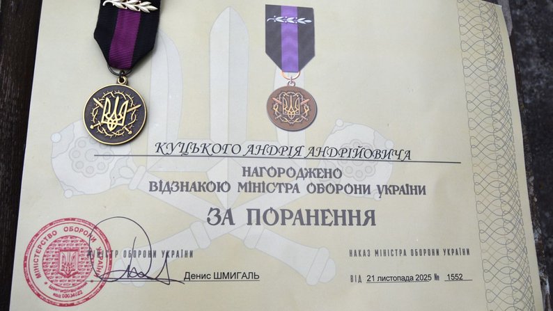Захиснику з Вінниччини Андрію Куцькому вручили відомчу відзнаку Міністерства оборони "За поранення".