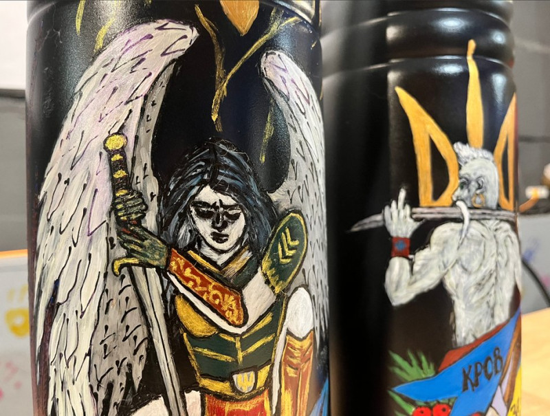 Сергій Кіндра розмальовує тубуси та різнокаліберні гільзи, потім їх продає. Волонтер говорить, що вони допомагають вирішити потреби військовослужбовців.
