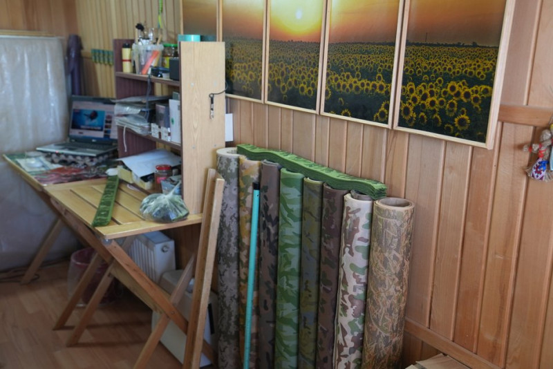 Нині в команді волонтера близько 30 людей, які працюють на трьох локаціях. Завдання Олега – зібрати гроші, закупити тканину та виготовити стрічки. У творчій лабораторії він підбирає кольори, малюнки і сам плете основу під маскувальну сітку.
