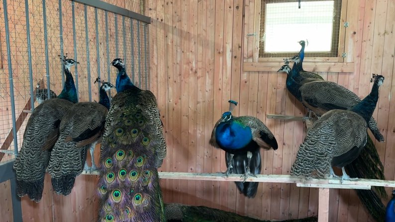 Павичі у зоопарку, Слов’янськ, Донецька область, червень 2025 рік. Кадр з відео Суспільне Донбас