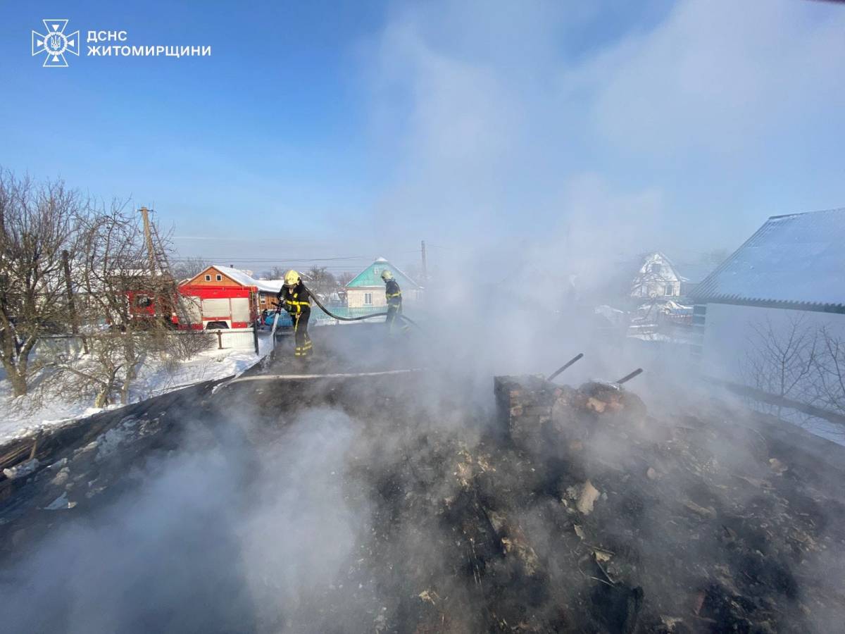 “Надзвичайна подія сталася у селищі Черняхів. По прибуттю рятувальників до місця виклику було встановлено, що горить покрівля будинку. Фахівці ДСНС запобігли перекиданню полум’я на поруч розташовану господарчу споруду. Пожежу ліквідували. Вогнем знищено покрівлю по всій площі, пошкоджено перекриття”.