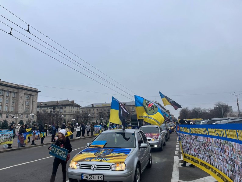 На Соборній площі з прапорами й плакатами зібралися близько сотні людей — рідні, друзі захисників, волонтери, військові та небайдужі містяни. Водіїв, які проїжджали повз, закликали посигналити та підтримати родини воїнів.
