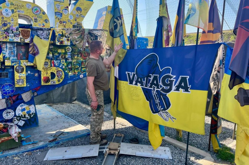 "Найперший шеврон нам дали грузини — Грузинський легіон. Є шеврони з Нідерландів, Канади, Америки, Англії, Німеччини. У мене за місяць іде близько 20 моїх капеланських шевронів з зображенням хреста — з кимось обмінятися, комусь подарувати. Декілька місяців тому ми з командиром наклеїли наш шеврон полку та лишили прапор на стелі Донецької області. Там ще статуя Матінки Марії стоїть".