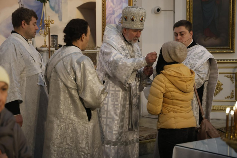 Єпископ Херсонський та Таврійський Нікодим причащає одну з парафіянок, 6 січня 2026 року. Суспільне Херсон/Олександр Корняков