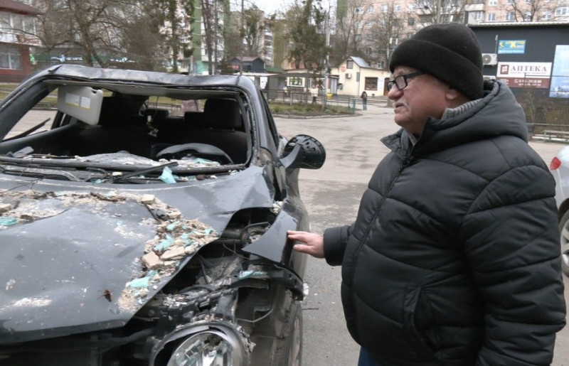 За словами Романа, під час прильоту біля під’їзду стояла його автівка. Зараз машина припаркована поруч із лікувальним закладом, куди вони з дружиною звернулися за допомогою.