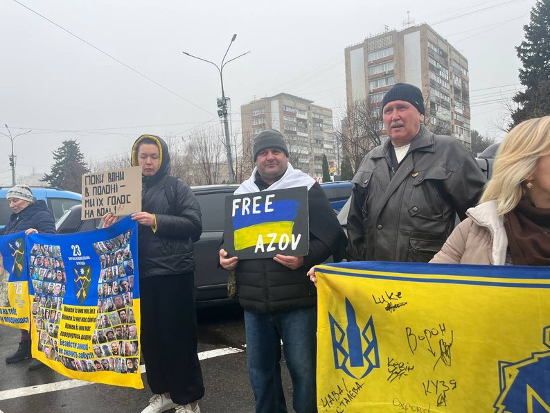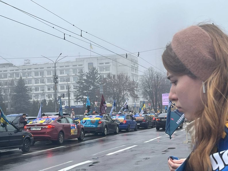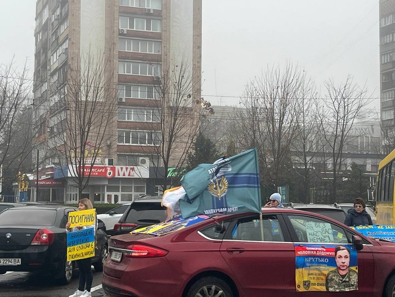 На Соборній площі з прапорами й плакатами зібралися близько сотні людей — рідні, друзі захисників, волонтери, військові та небайдужі містяни. Водіїв, які проїжджали повз, закликали посигналити та підтримати родини воїнів.