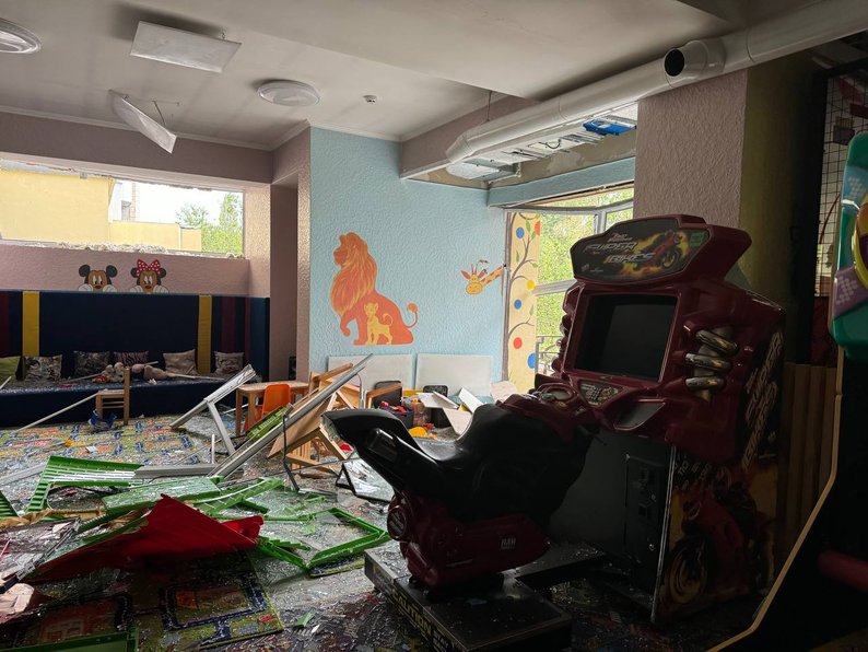 Серед пошкоджених внаслідок ракетно-дронової атаки у Каневі будівель — дитячий розважальний центр "Казка".