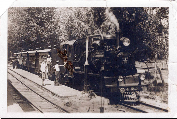 На одній із листівок зображено урочисте відкриття руху на Малій Сталінській залізниці 6 липня 1936 року (так тоді називалась залізниця). На станції «Жовтенят» триває посадка у вагони.