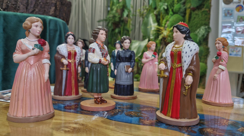 Галина Комендант із гіпсовими фігурками. Яна Созанська/Суспільне Ужгород"Ці жінки, коли жили у свій час, вони йшли далеко вперед. Вони мали свою мету, вони дуже багато перепон на своєму шляху мали. Вони були героїнями свого часу. Мені здається, що сучасні жінки зараз роблять те саме. Я хочу їм показати приклад, що "дівчата, це вже було". Ми такі самі круті, у нас в ДНК це все є, тому у нас все вийде", — каже Галина Комендант.