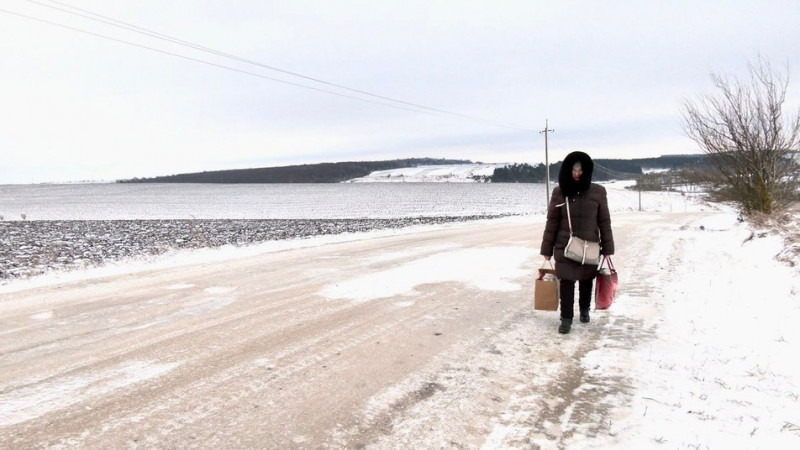 Жителька Панасівки Ольга Очкусь добирається додому пішки. Суспільне Тернопіль