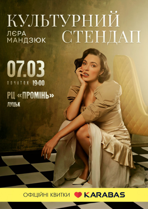 7 березня о 19:00 у «Промені» вона презентує «Культурний стендап» – нову приголомшливу концертну програму, яка подарує всім незабутні години позитиву, спілкування, блискучої імпровізації та найяскравіших вражень.
