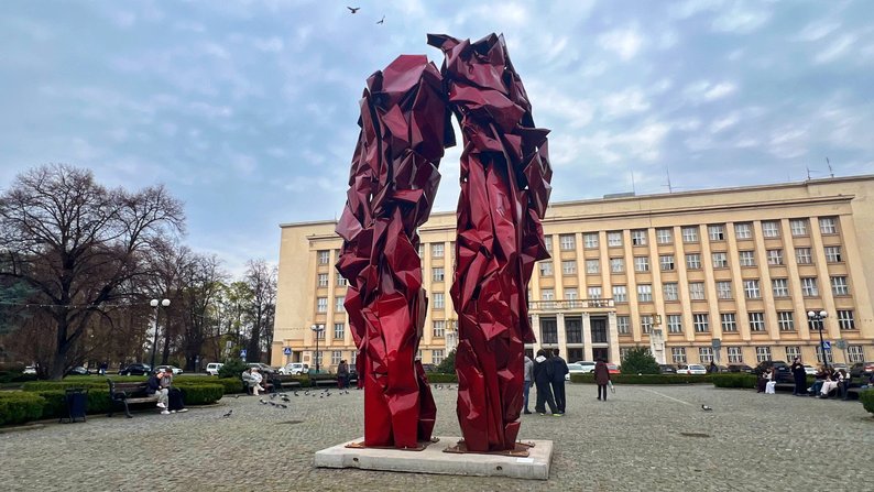 Інталяція Михайла Деяка “Реконструкція подій” на площі Народній в Ужгороді. Мар’яна Русин/Суспільне Ужгород