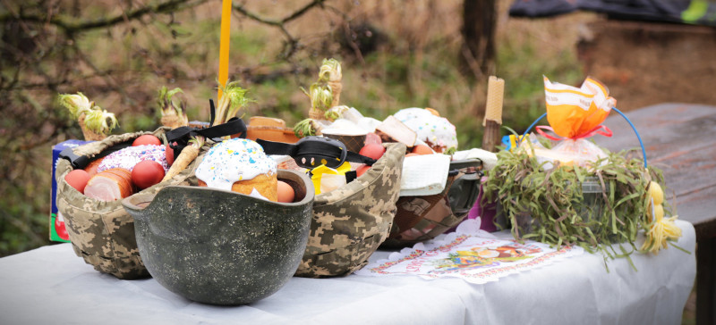 Священники освячують великодні страви бійців. 105 бригада тероборони ЗСУ
