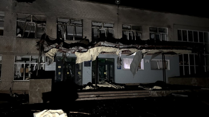 За його словами, внаслідок влучання у закладі освіти вибиті вікна, пошкоджений дах та центральний вхід. Також у навколишніх багатоповерхівках є вибиті вікна внаслідок вибуху.