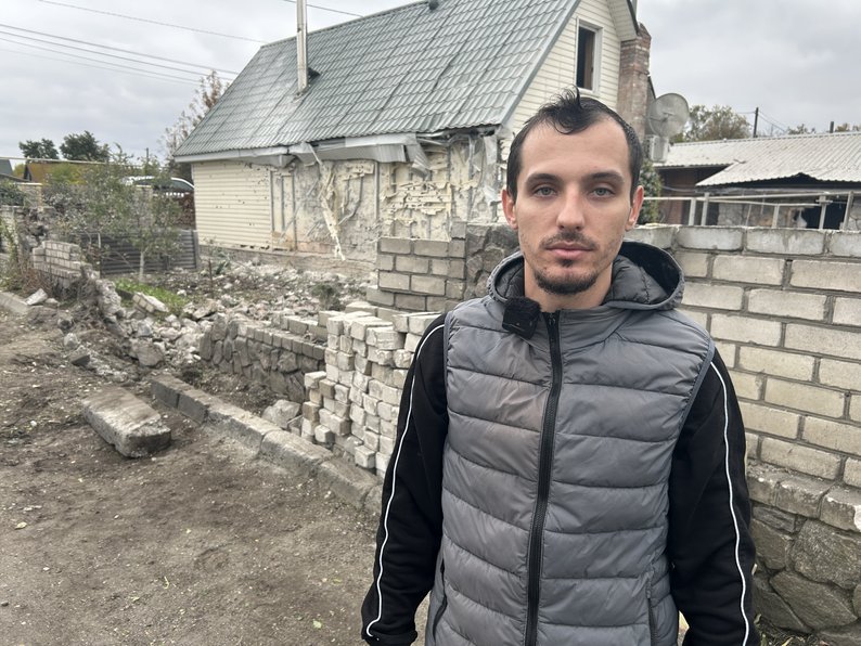 "Кілька вибухів було, так. А от саме по землі удар був відчутний тут, саме на цьому місці. Був вдома, недалеко від місця удару живу. Почув вибухи, вийшов на вулицю, побачив, що тут все завалено. Ось прийшов, вирішив допомогти сусідам розбирати завали", — говорить місцевий житель Ілля Войтенко.