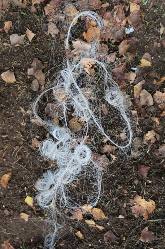 Оптоволокно від російського дрона, який атакував будинок у Херсоні, листопад 2025 року. Суспільне Херсон/Олександр Корняков