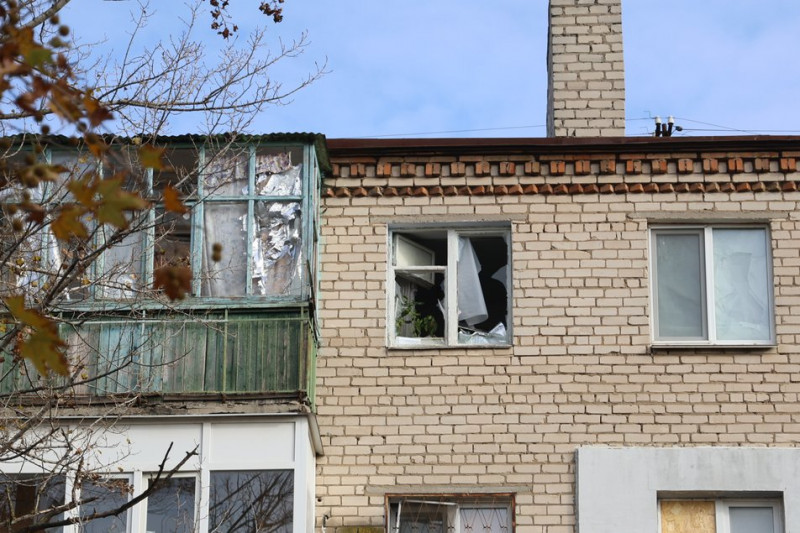 Пошкоджені вікна після російської атаки 12 листопада 2025 року, Херсон. Суспільне Херсон/Олександр Корняков