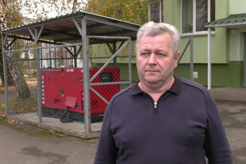 "Станом на сьогодні [31 жовтня — ред.] відключень в закладі не було, але ми готові до цього, тому що маємо генератор. Ми включаємо його кожен день вранці для перевірки, щоб акумулятор був підзаряджений, і чи працює, щоб в разі потреби можна було перейти на світло. Потужності вистачає повністю забезпечити школу, їдальню, й укриття, яке є в закладі. Використовуємо дизпаливо. Бак на 100 літрів, вистачає практично на цілий день", — пояснив Володимир Дзюбак.
