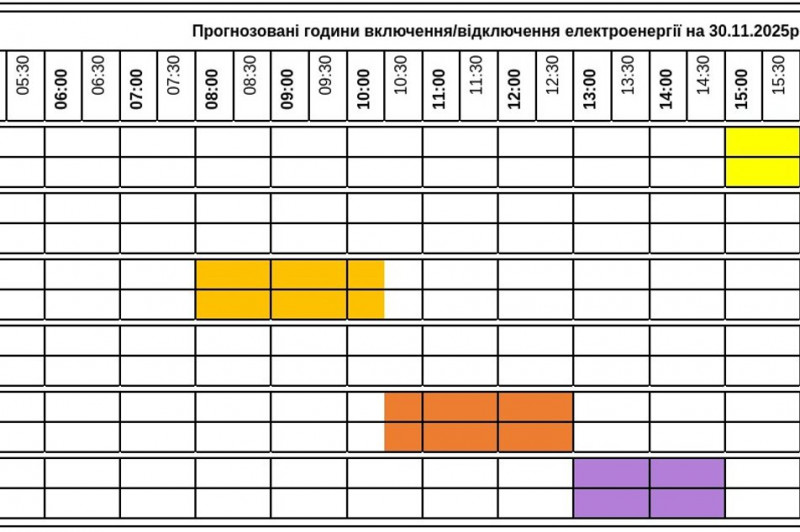 Графік вимкнення світла на Закарпатті 30 листопада. АТ “Закарпаттяобленерго”/Telegram