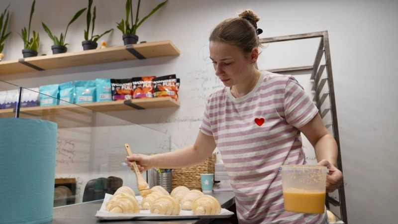 Працівниця пекарні готує круасани. Суспільне Тернопіль