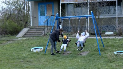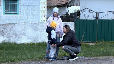 "Старша навчається онлайн, але це важко. Тут дітей в селі мало, тільки майданчик є. Вдома граємося самі. Автобус їздить, але Настя у мене така доця, що вона вся в собі. Вона сама їздити не буде, аби хоч із села була ще така дівчинка, як вона, то разом би, може, їздили. А сама — ні. Малий Ромка — він дуже вкачується, навіть таблетки не допомагають".