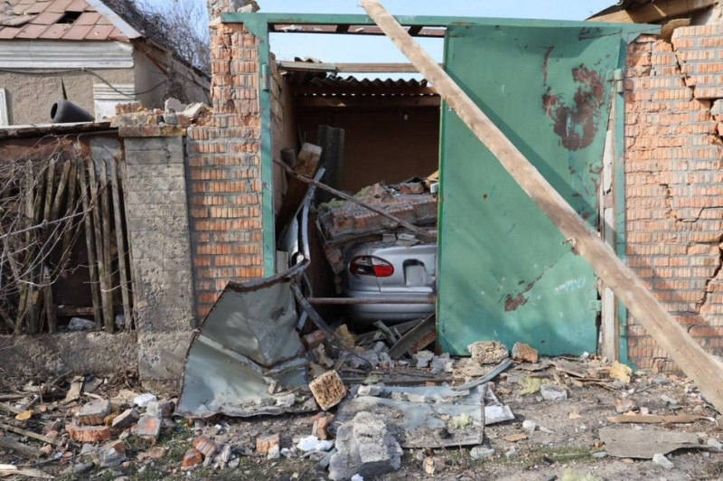 Зруйновані обстрілом РФ гараж та автомобіль у Центральному районі, Херсон, березень 2026 року. Суспільне Херсон/Олександр Корняков