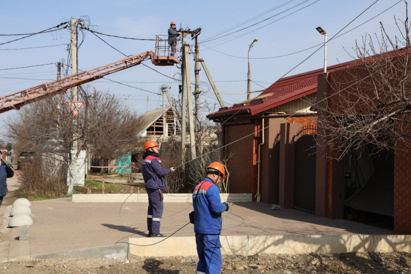 Ремонтна бригада електриків лагодить мережі після обстрлів у Херсоні, березень 2026 року. Суспільне Херсон/Олександр Корняков