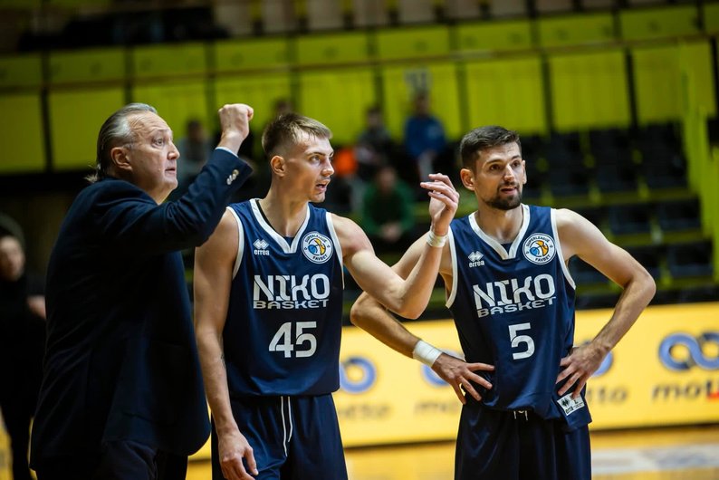 Головний тренер “Ніко-Баскет” та спортсмени під час змагання у Вищій лізі. МБК “Ніко-баскет”/Facebook