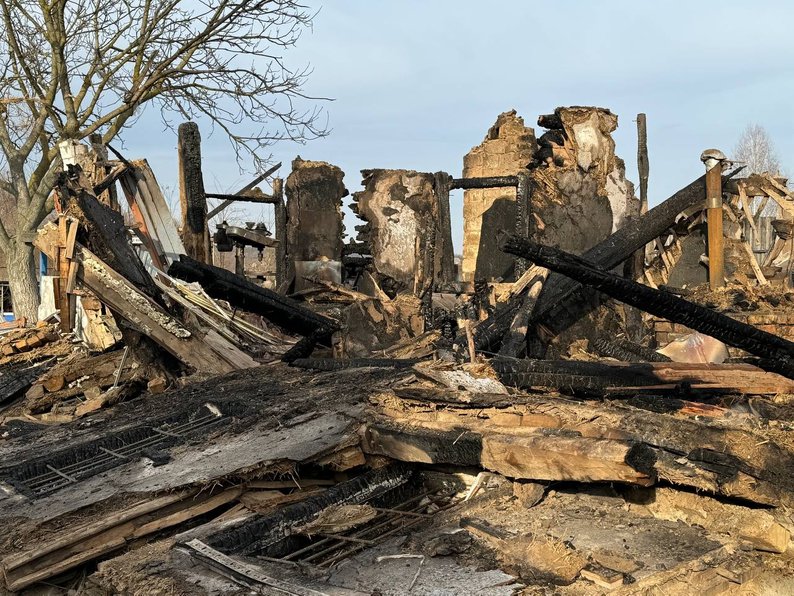 "Зателефонував тато, сказав, що прилетіло сюди до нас у двір. Я відразу сів у машину, поїхав. Коли приїхав, то воно вже активно все горіло, згорала хата. Вона була вже розвалена, її рознесло, бо прямий приліт був у хату. Потім приїхали пожежники, місцеві служби, почали гасити".