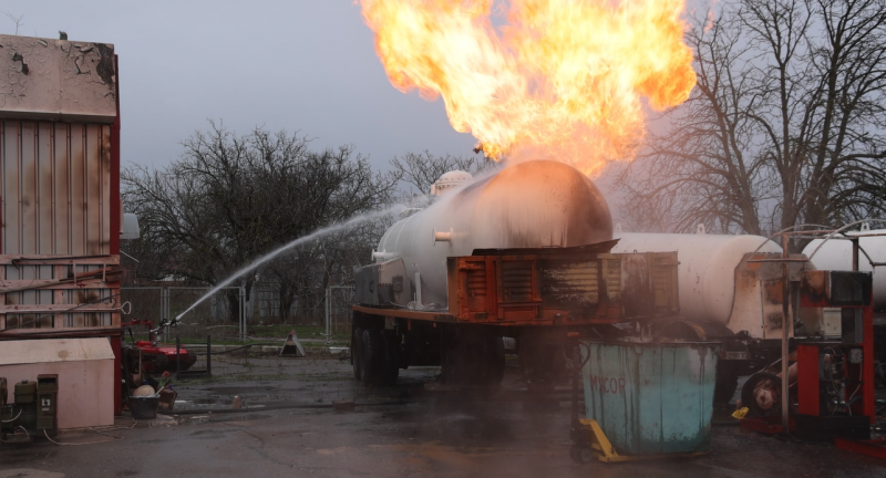 Роботизований комплекс гасить вогонь на автоцистерні. ДСНС Херсонщини