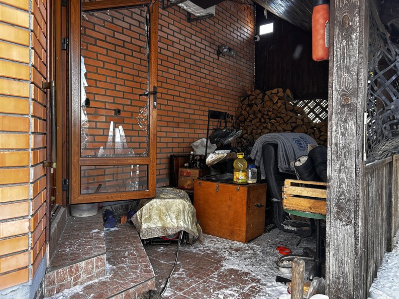 У будинку Любові Коломієць та її чоловіка пошкоджений дах, вибиті усі вікна та частково двері. Також уламками побита і автівка у дворі.