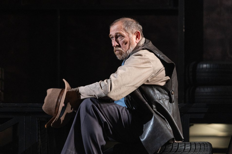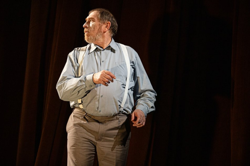 Народний артист України Віктор Жданов на сцені Національного академічного драматичного театру імені Івана Франка у Києві репетирує нову роль у виставі Троянство".