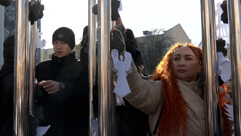 Люди вішають паперові фігурки янголів на “Дерево свободи” у Вінниці. Суспільне Вінниця