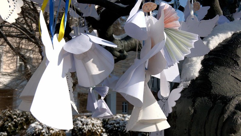 Паперові фігурки янголів на “Дереві свободи” у Вінниці. Суспільне Вінниця