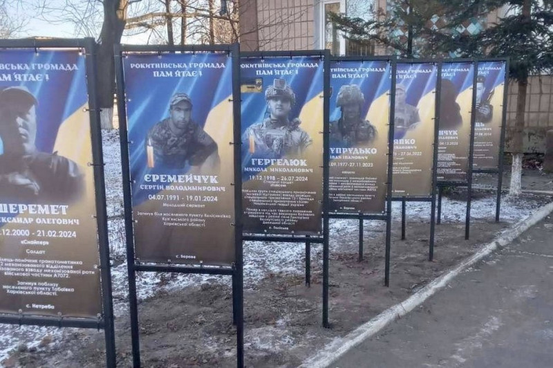 На пам’ятних портретах зображені місцеві жителі, які загинули у російсько-українській війні: