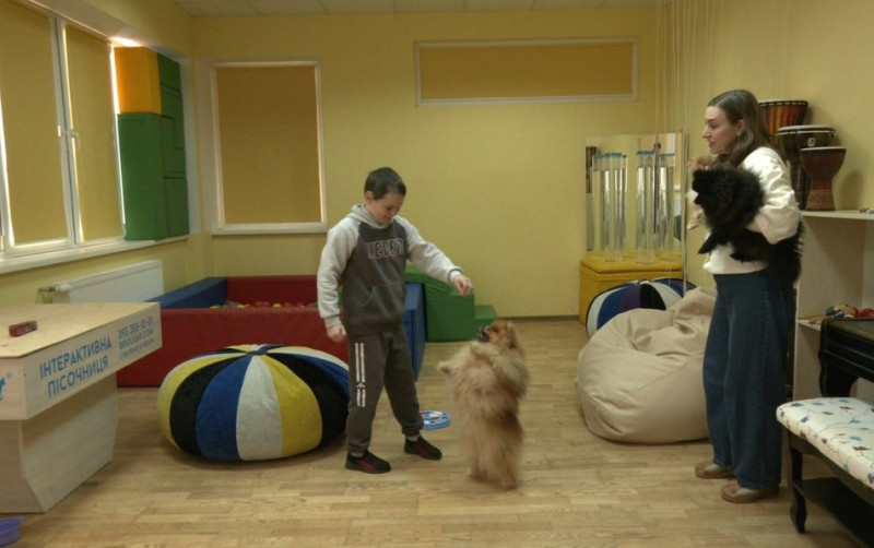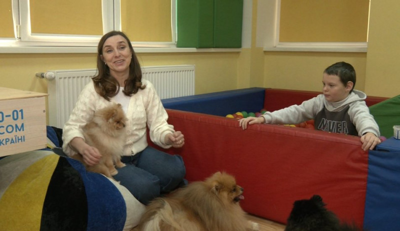 "Річард у нас працює четвертий рік. Він має досвід, знання, має сертифікацію. А ці собачки асистують, дивляться, також виконують свою роль, бо всі ними милуються. Собак можна використовувати в каністерапії тільки після двох років, тобто, вони ще будуть звикати до приміщень, до взаємодії з дітьми.