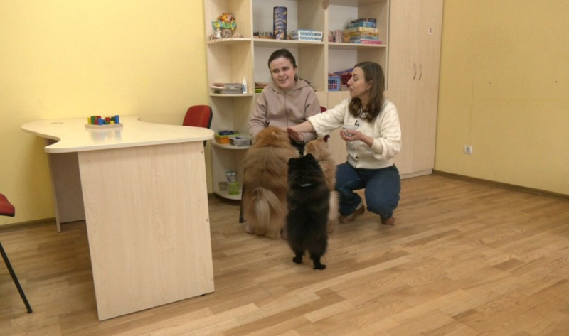 "З іншою нашою вихованицею Іринкою спрацьовують сенсорні відчуття, вона гладить собачок, ми з нею багато комунікуємо, говоримо про різні породи. Запам’ятовуємо, пропрацьовуємо пам’ять, вивчаємо різні породи, дізнаємося цікаві факти", — говорить Ірина Солан-Осьмак.
