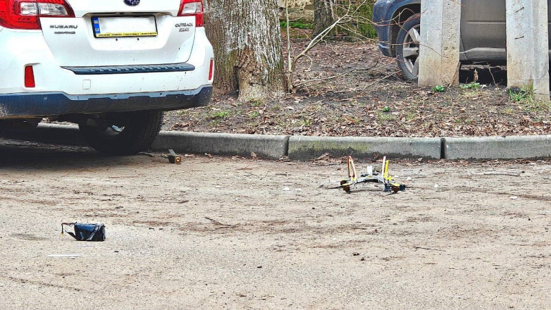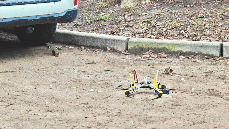 Дрон на дорозі в центрі Сум. Сумська обласна організація ТЧХУ