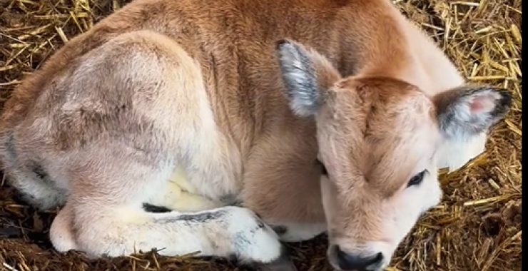У Фельдман Екопарк поповнення — кілька днів тому народився бичок сірої угорської корови.