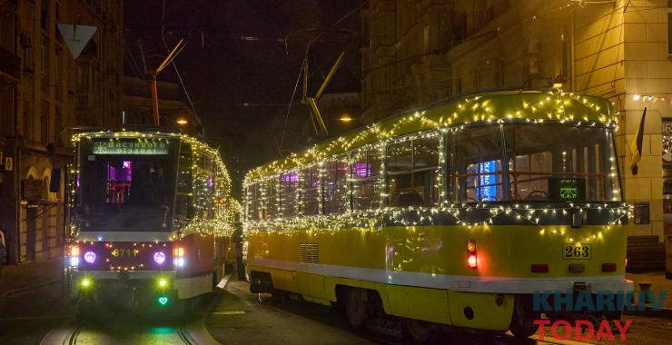 Традицію оздоблювати трамваї до свят Харків перейняв у європейських міст. наприкінці 2024 року по Харкову курсували 10 святкових трамваїв, цьогоріч їх більше. Вагони прикрасили святковими гірляндами. Трамваї з ілюмінацією курсують на багатьох маршрутах.