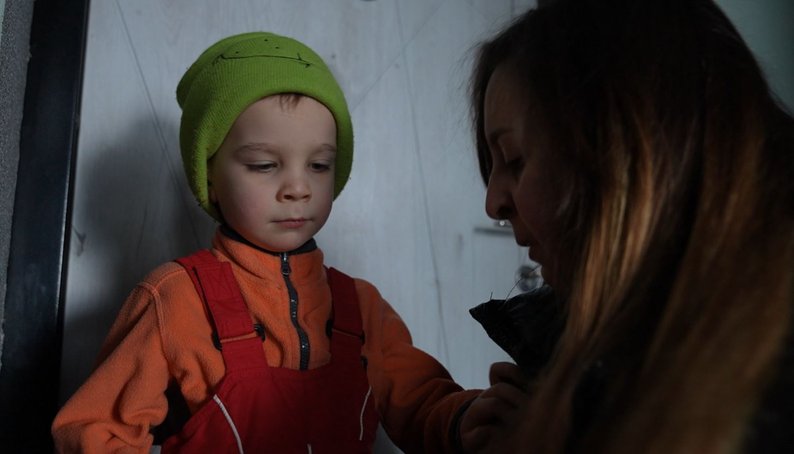 В умовах відсутності опалення під час відключень світла, 5-річного сина пані Зоя намагається одягати тепліше: