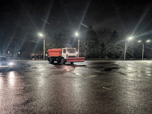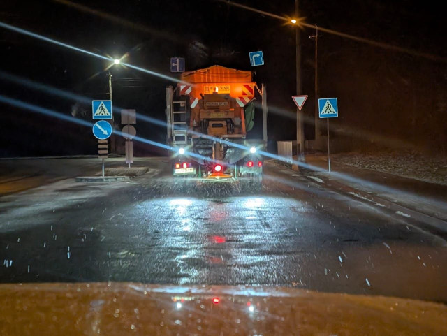 Уже з 18 години техніка виїхала на профілактичну підсипку сіллю автошляхів, небезпечних ділянок, шляхопроводів і мостів з метою запобігання утворенню ожеледиці.