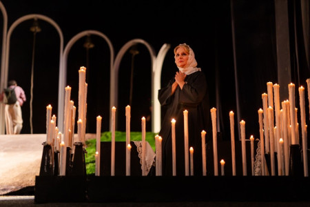 Це перше сценічне прочитання цього твору в Україні, прем’єра якого відбулася в Рівному у вересні 2025 року. Постановка стала резонансною культурною подією: першопоказ відвідали глядачі з усієї України, а проєкт отримав широкий розголос у центральних ЗМІ. З великим успіхом вистава гастролювала у Дніпрі. Там її на благодійній основі переглянули понад 500 жінок: матерів, доньок, сестер, дружин загиблих та зниклих на російсько-українській війні Героїв.