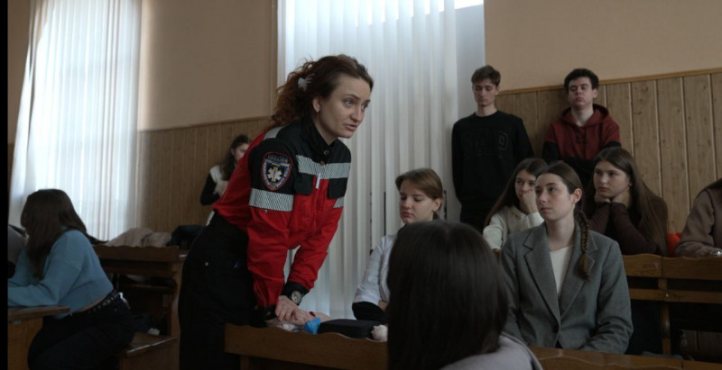 Анна Єгорова поазує, як затискати рану Суспільне Тернопіль