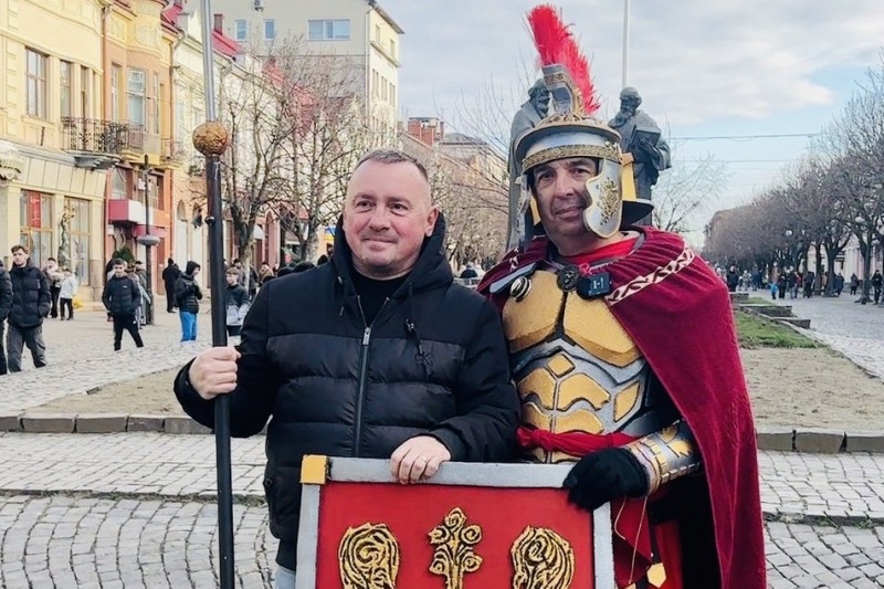 Олесандр Хлопонін фотографується з перехожими. Міла Мороз/Суспільне Ужгород